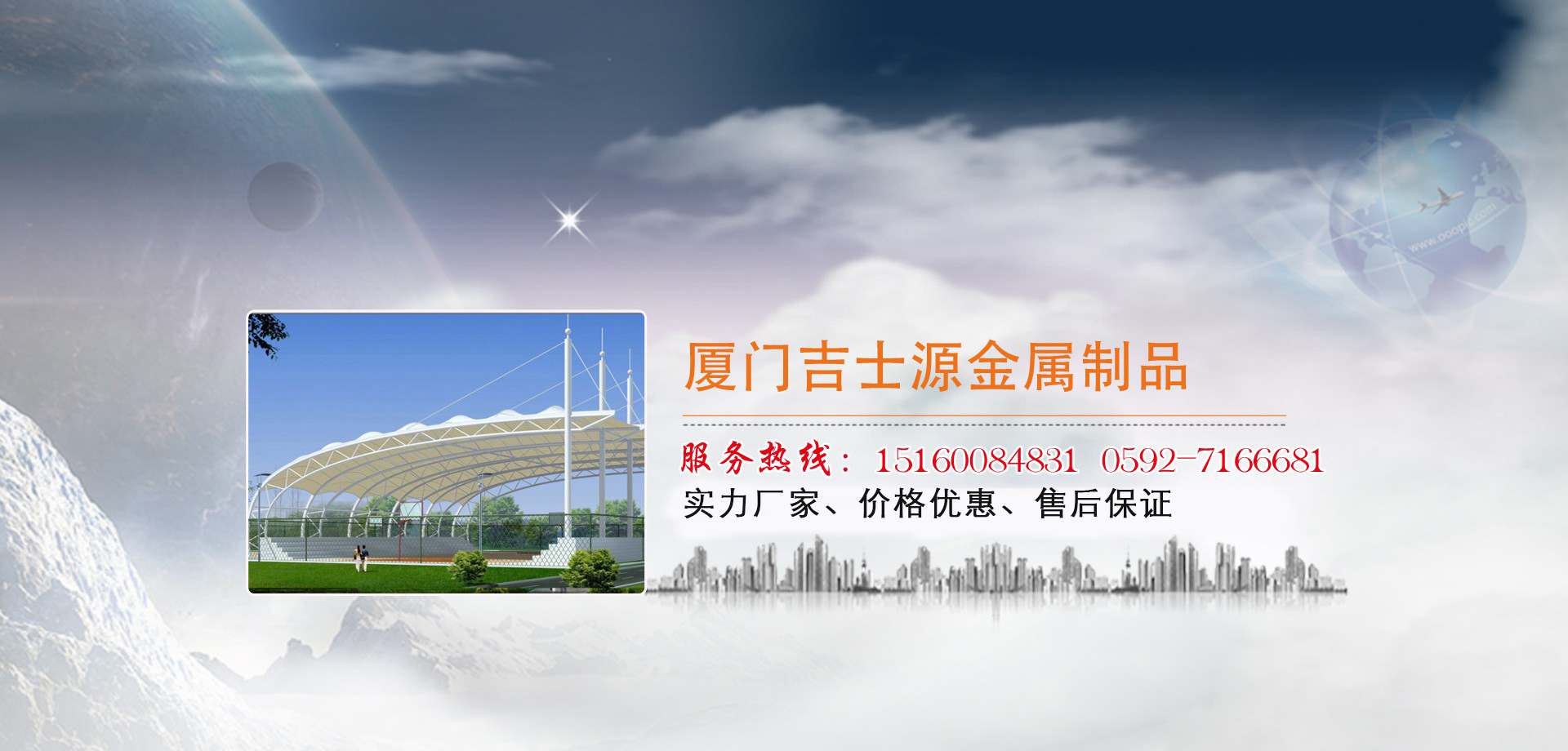 廈門吉士源金屬制品有限公司,位于中國旅游名城廈門。是一家集設計、加工、銷售、安裝為一體的專業制造各類高檔停車棚、膜結構車棚、移動公廁、雨棚、智能遙控車庫門、不銹鋼旗桿、崗亭、戶外推拉帳篷、曲臂伸縮雨棚、鐵藝樓梯扶手、防盜網、庭院豪華大門、室內外欄桿、綠…
